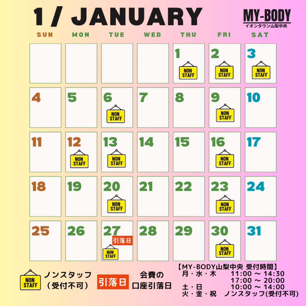 1月の受付可能日です。