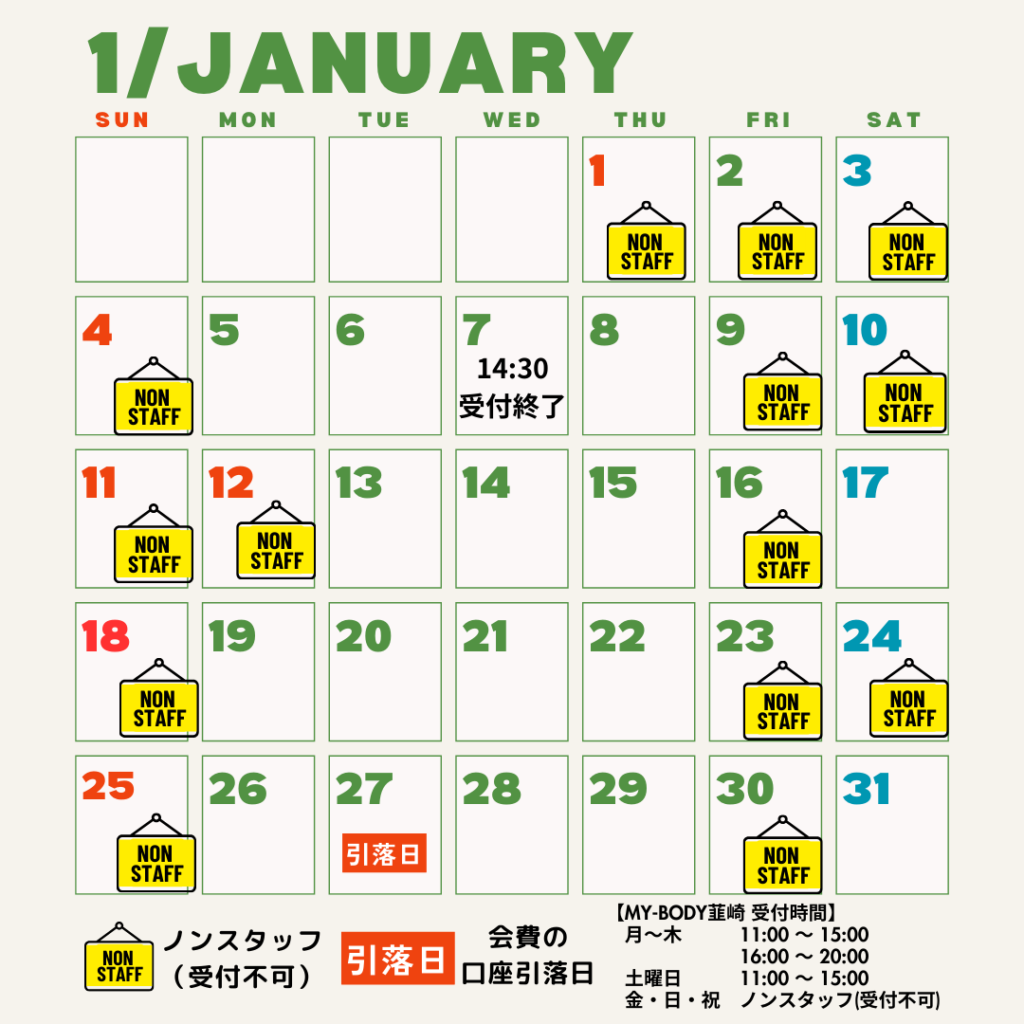 2025.12.25 韮崎 1月受付カレンダー カテゴリ 全店舗 潮見 南橋本店 イオンタウン山梨中央店 フォレストモール甲斐竜王店 富士川店 韮崎 塩山 南アルプス 石和 牧之原店 富士宮 清水 佐久インターウェーブ店 前橋店