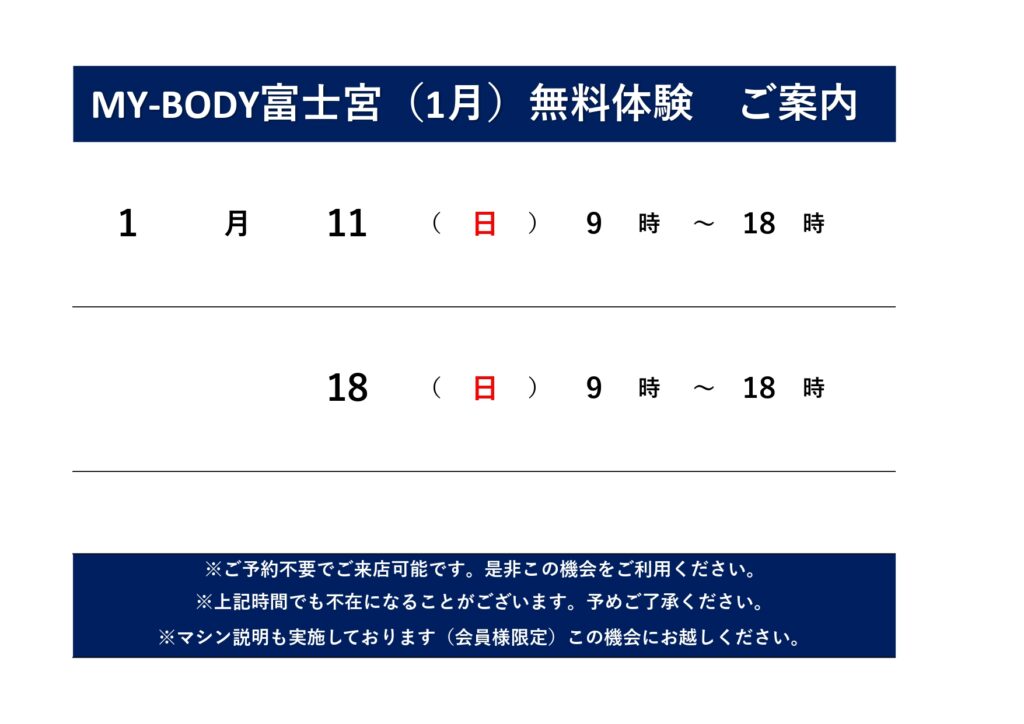 2026.01.06 富士宮 1月施設見学&無料体験会のお知らせ 無料体験を行う際は、室内シューズご持参の程よろしくお願いいたします。 カテゴリ 全店舗 潮見 南橋本店 イオンタウン山梨中央店 フォレストモール甲斐竜王店 富士川店 韮崎 塩山 南アルプス 石和 牧之原店 富士宮 清水 佐久インターウェーブ店 前橋店