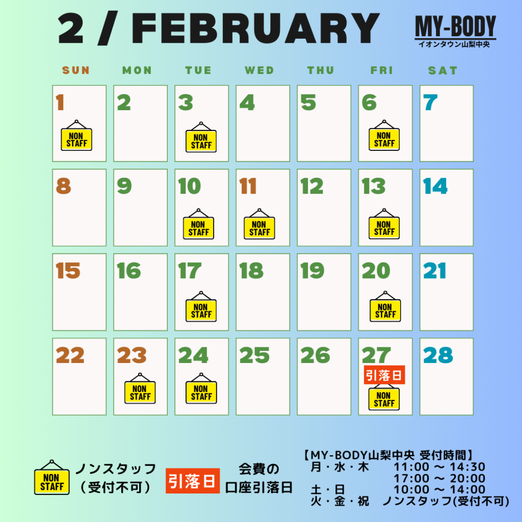 2月の受付可能日です。