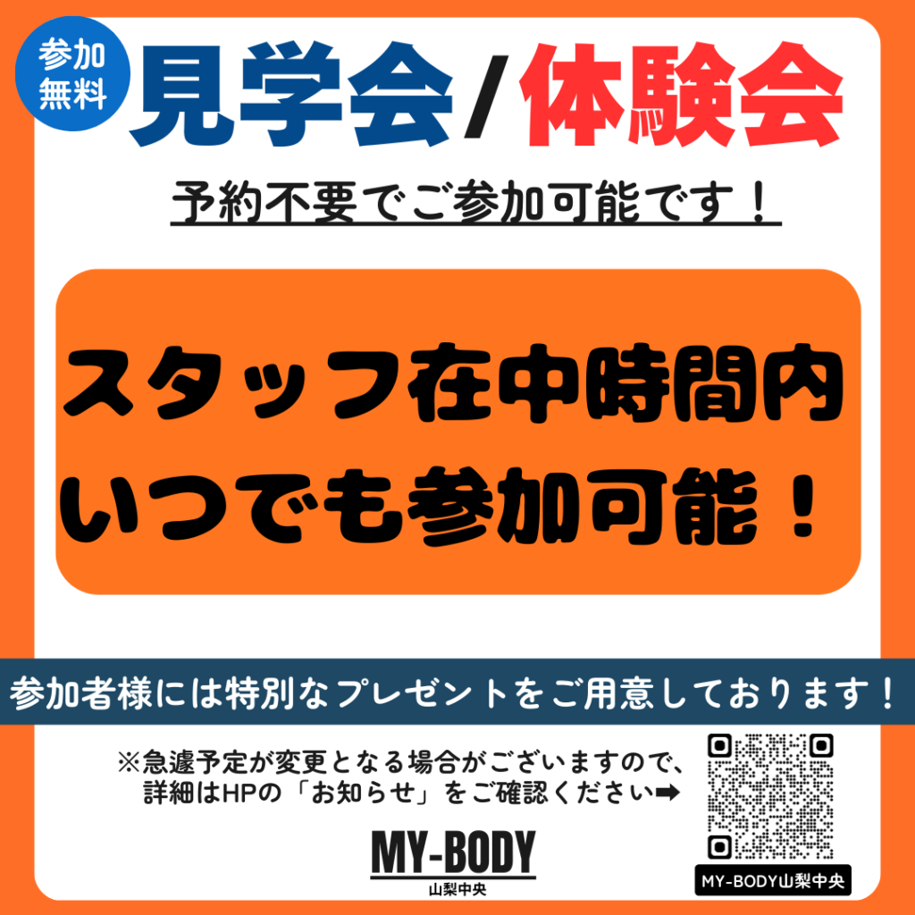 2026.01.28 イオンタウン山梨中央店 【参加無料】見学会/体験会のご案内 2月の見学会・体験会のスケジュールです!! 予約不要!参加無料です! スタッフ在中時間内であればいつでも参加可能です。 ご参加をお待ちしております。 カテゴリ 全店舗 潮見 南橋本店 イオンタウン山梨中央店 フォレストモール甲斐竜王店 富士川店 韮崎 塩山 南アルプス 石和 牧之原店 富士宮 清水 佐久インターウェーブ店 前橋店