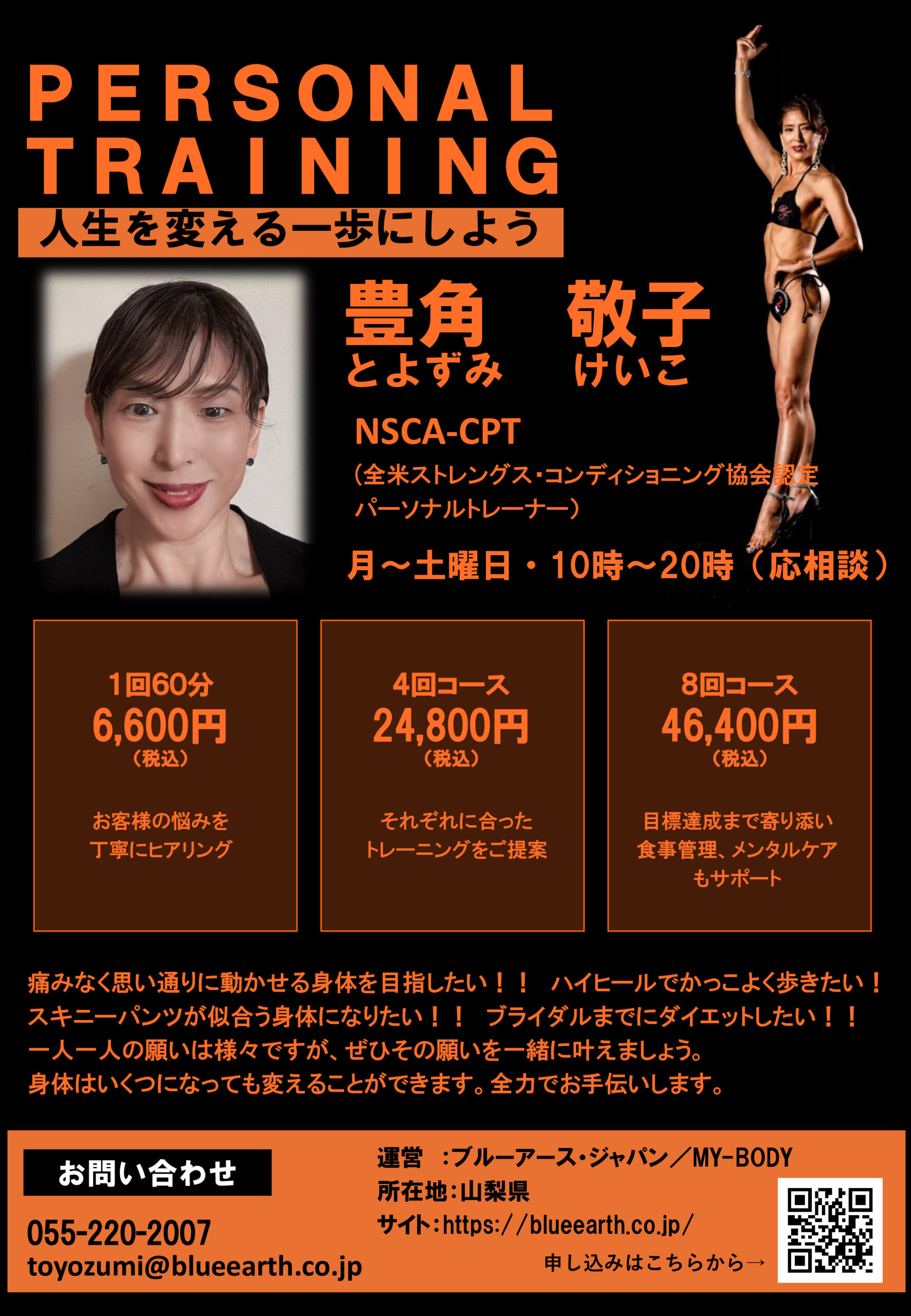 ブルーアース (スパ店・敷島店・山梨店)のトレーニングジム、MY-BODY(山梨中央・甲斐竜王・富士川・韮崎・塩山・南アルプス)をご利用いただけるプランです。