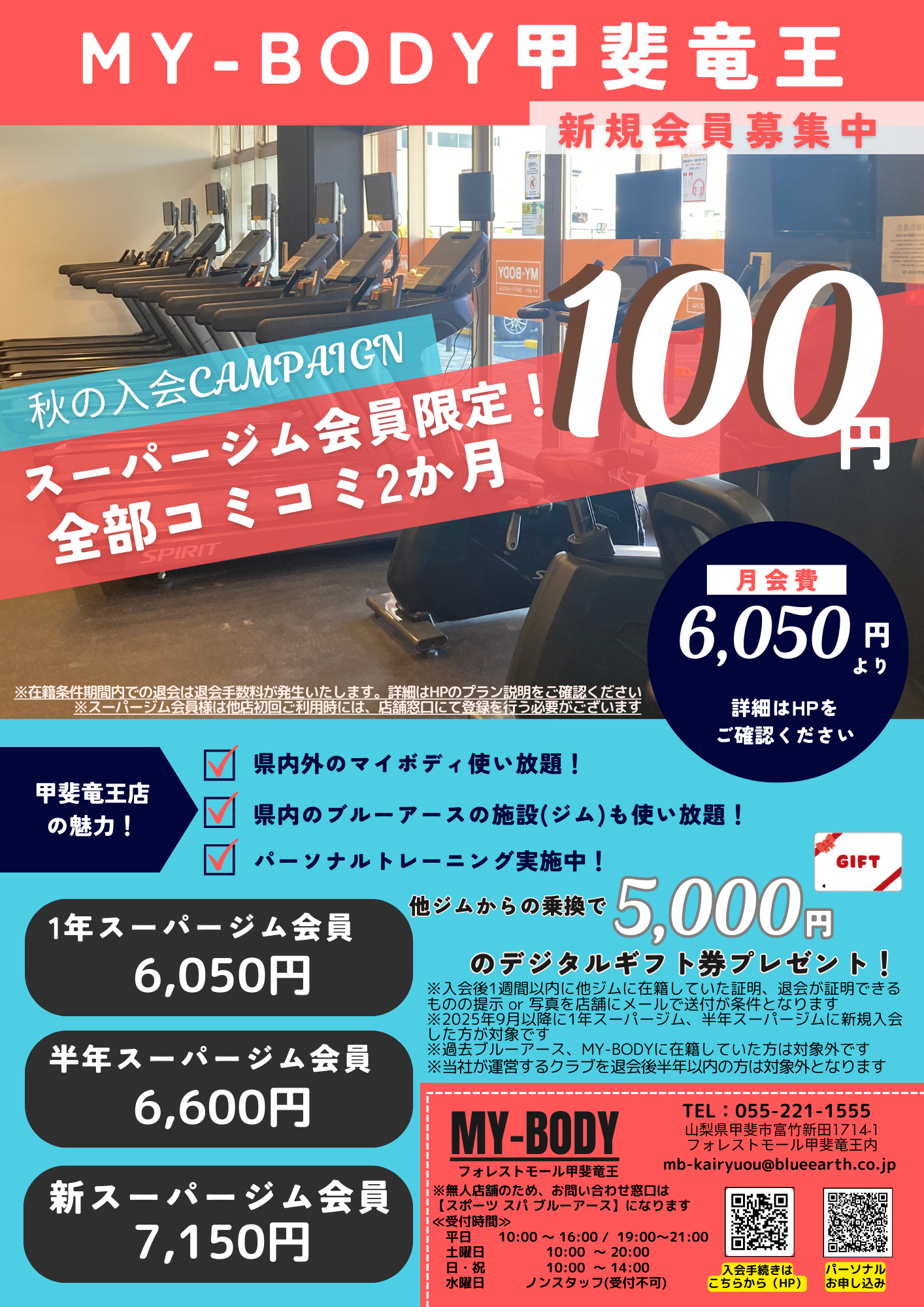- MY-BODY 山梨中央・甲斐竜王・富士川・韮崎・塩山・南アルプスが24時間利用可能